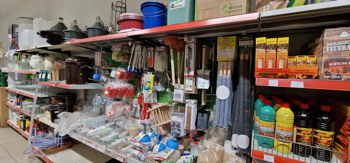 Ein umfangreiches Sortiment an Sämereien, Grassamen, Pflanzenschutzmitteln, Dünger, Folien, Vlies, Drahtzäune, Gartengeräte, Gummistiefeln, Kekila-Säften und Geschenkartikeln runden das Angebot ab und laden zum Stöbern und Verweilen ein.