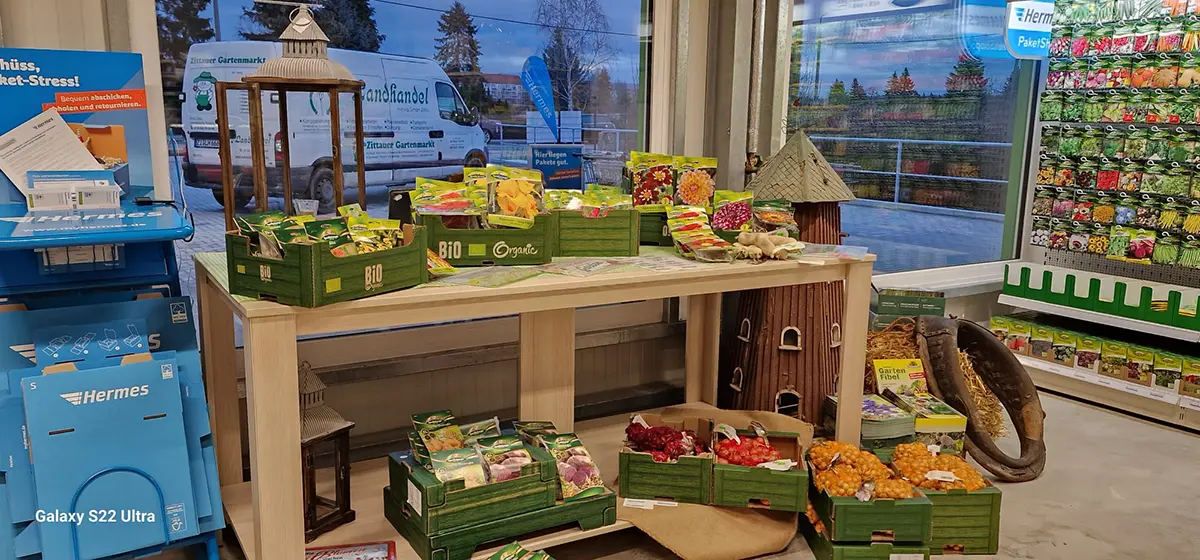 Ein umfangreiches Sortiment an Sämereien, Grassamen, Pflanzenschutzmitteln, Dünger, Folien, Vlies, Drahtzäune, Gartengeräte, Gummistiefeln, regionale Produkte und Geschenkartikeln laden zum Stöbern und Verweilen ein. Gern stellen wir Ihnen individuelle Präsentkörbe zusammen.