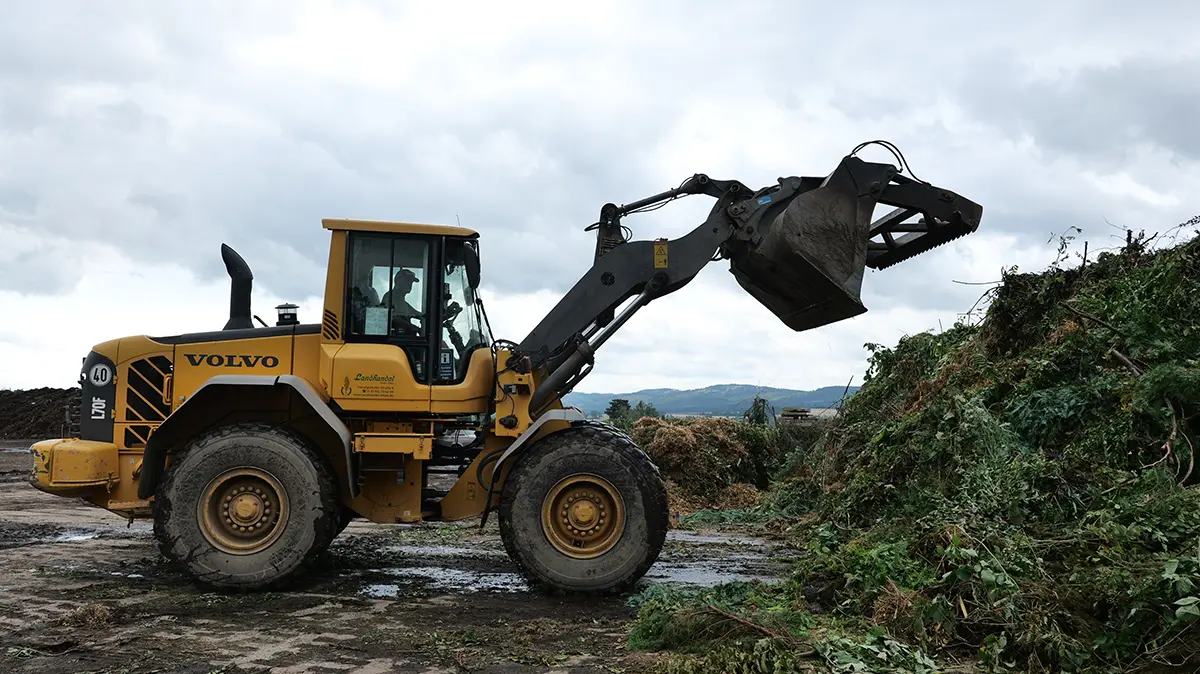 Auf unserer Kompostieranlage in Zittau nehmen wir kompostierfähige Abfälle wie Baum-, Strauch- und Heckenschnitt sowie Grasmahd entgegen. Nach der Bearbeitung dieser Grünabfälle entsteht im natürlichen Rotteprozess hochwertige Humuserde, die wertvolle organische Bestandteile und Nährstoffe enthält.